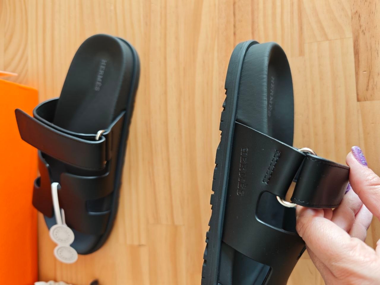 Hermes Buty, sandaly klapki, skora