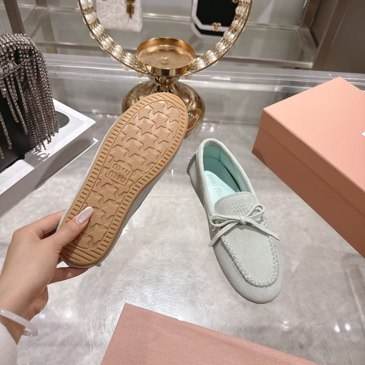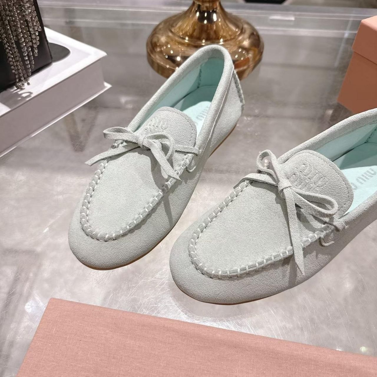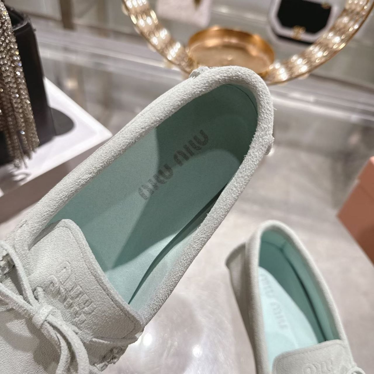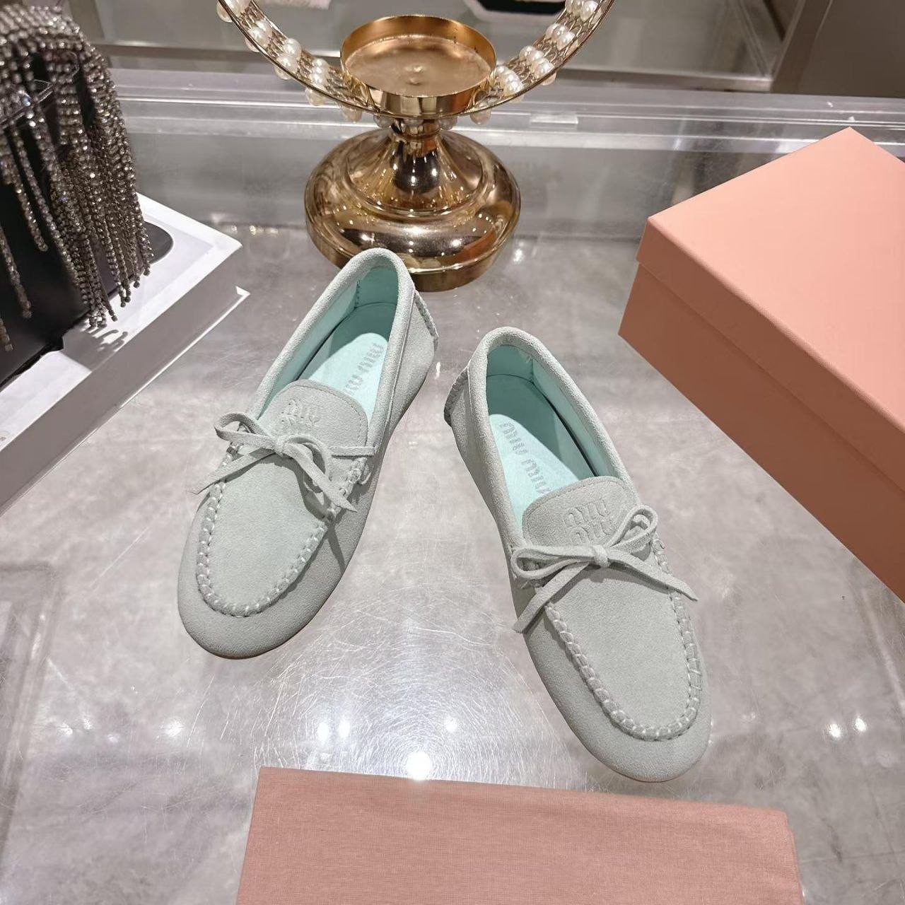 Miu Miu mokasyny półbuty damskie baleriny Loafersy, skóra