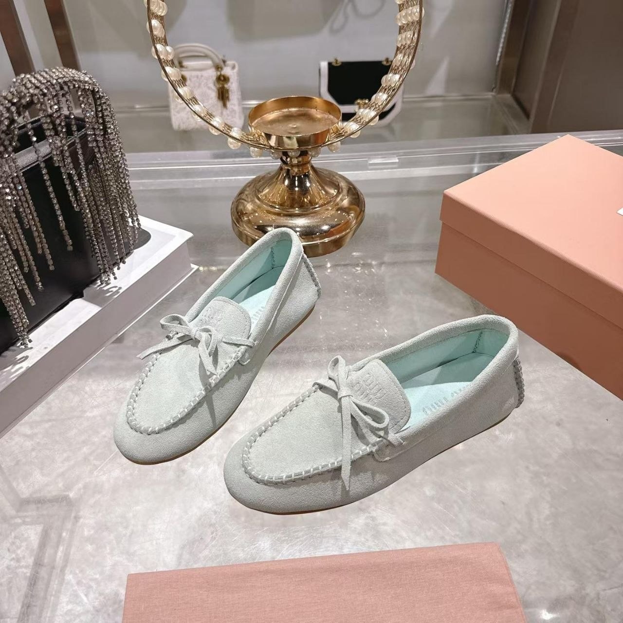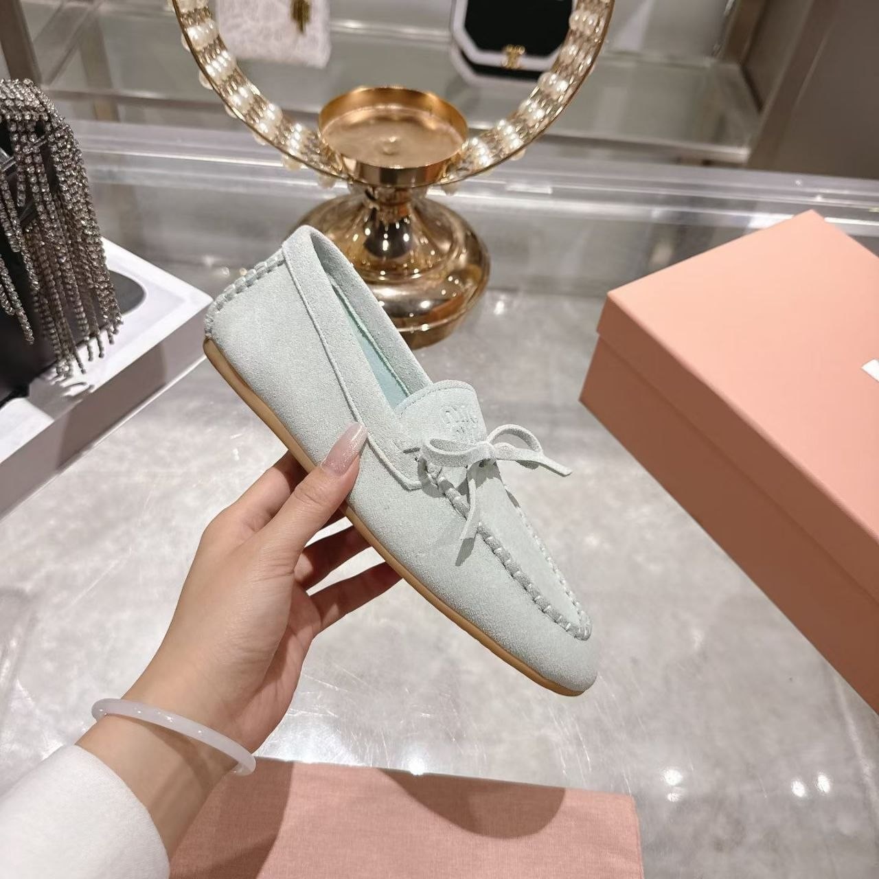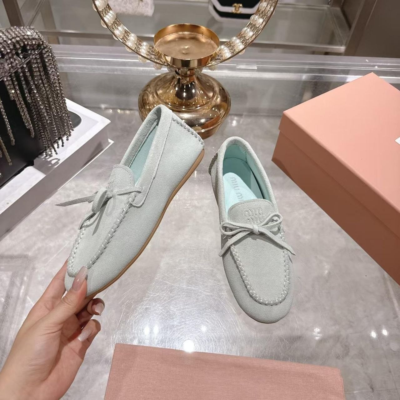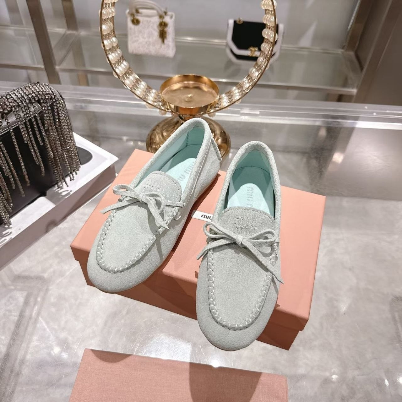 Miu Miu mokasyny półbuty damskie baleriny Loafersy, skóra