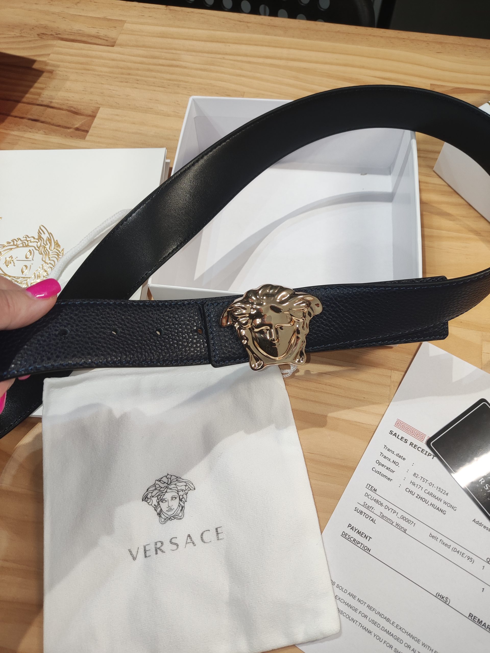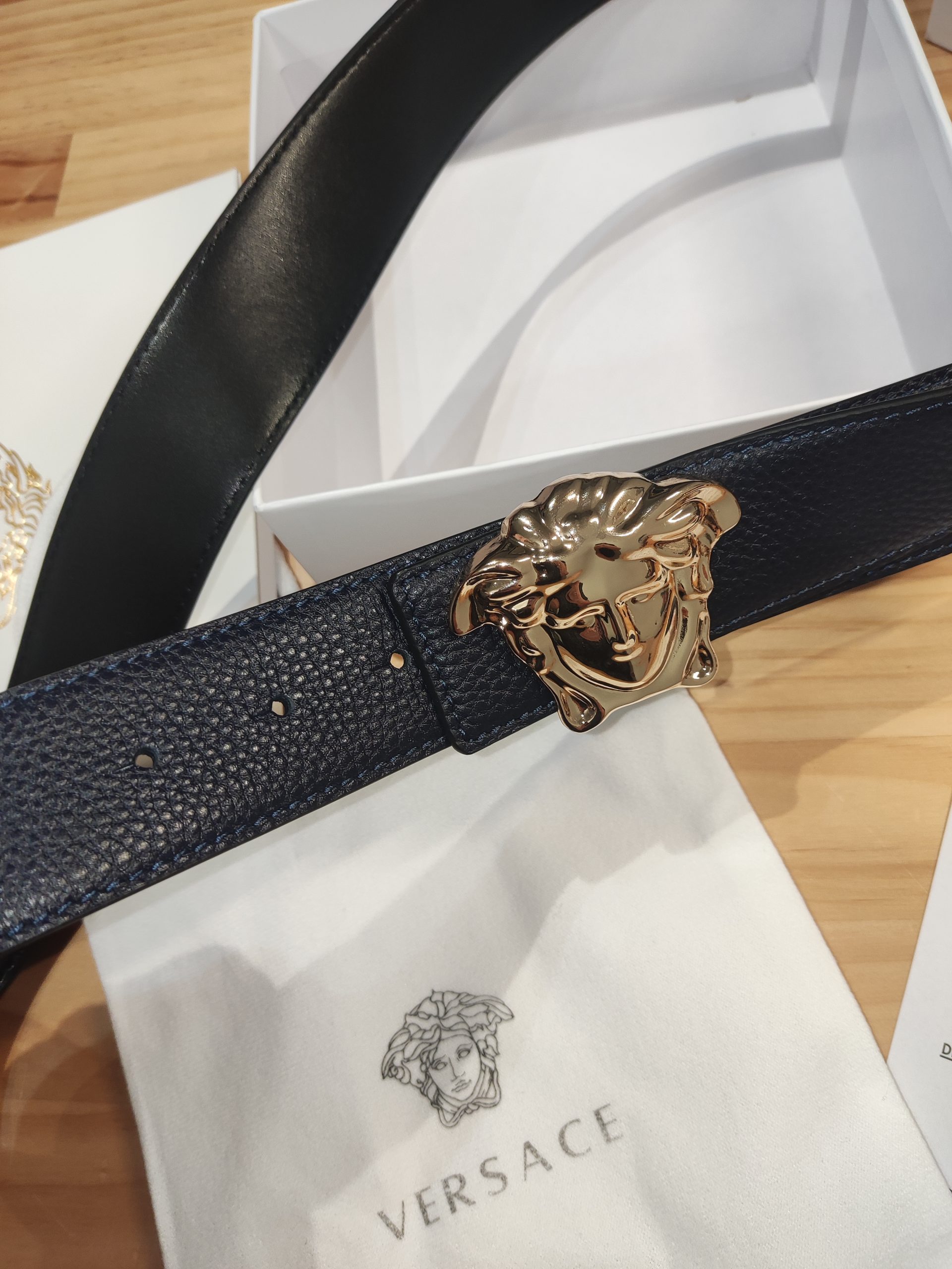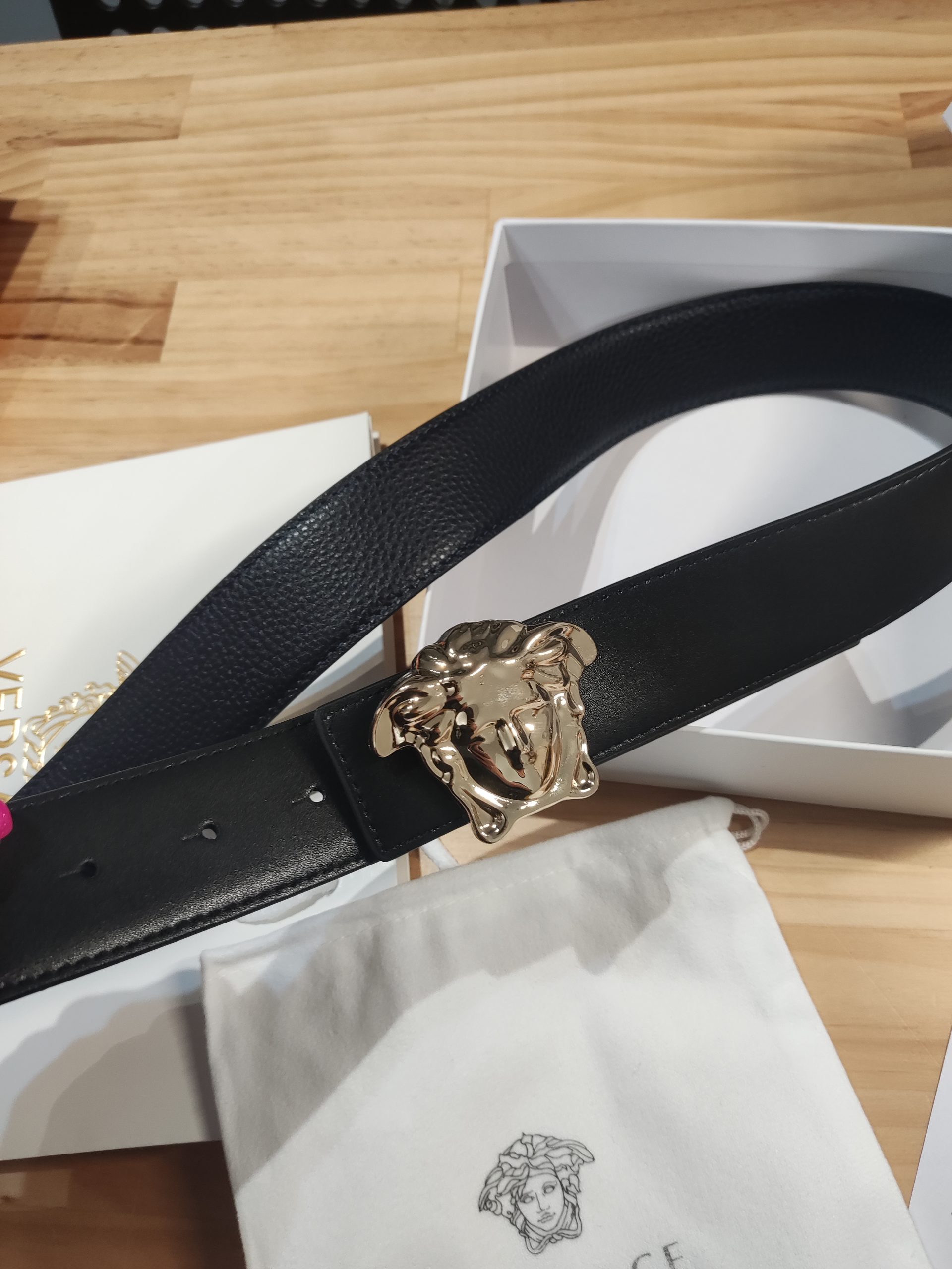 Pasek dwustronny damski, meski, skóra Versace od reki