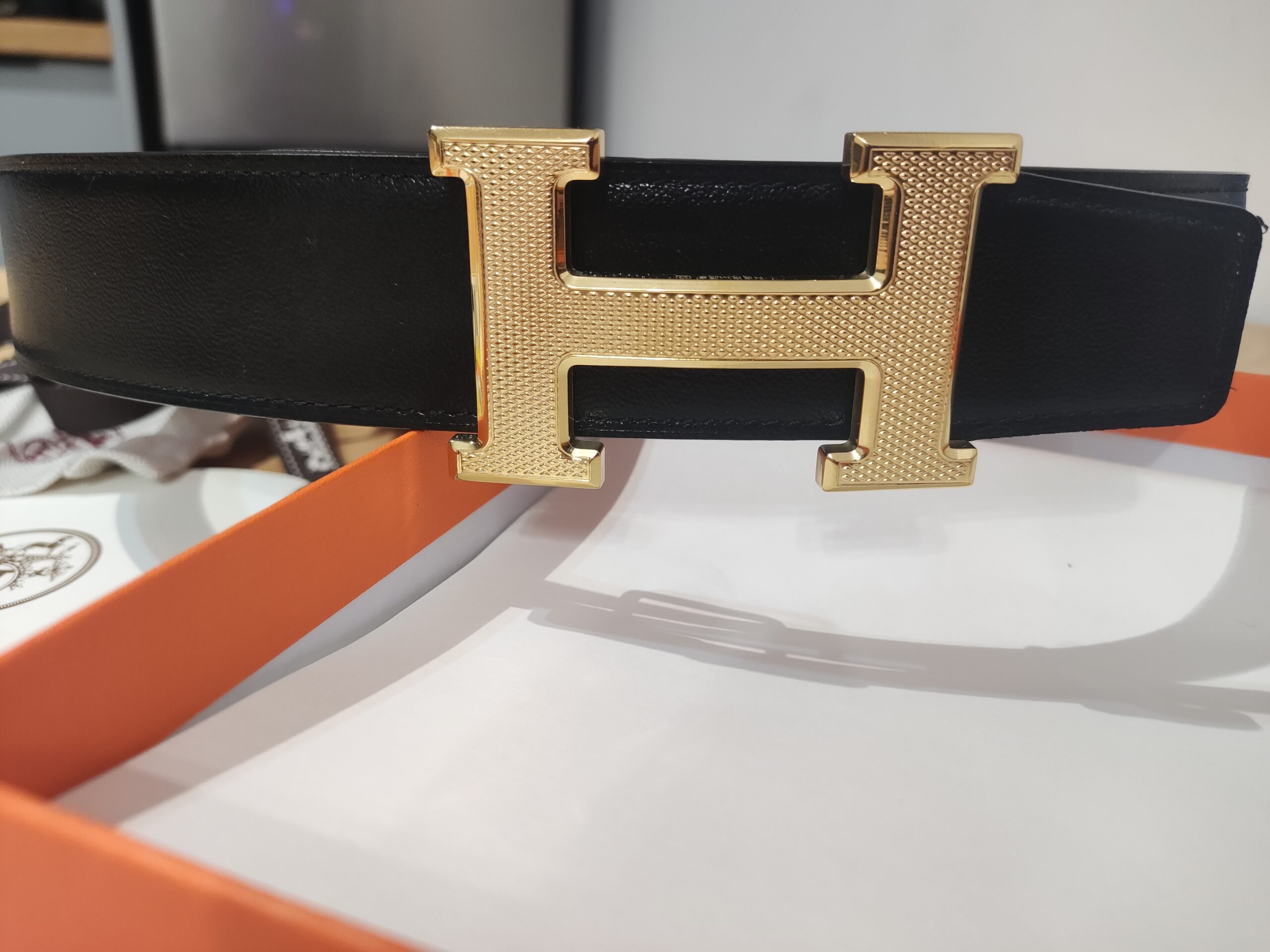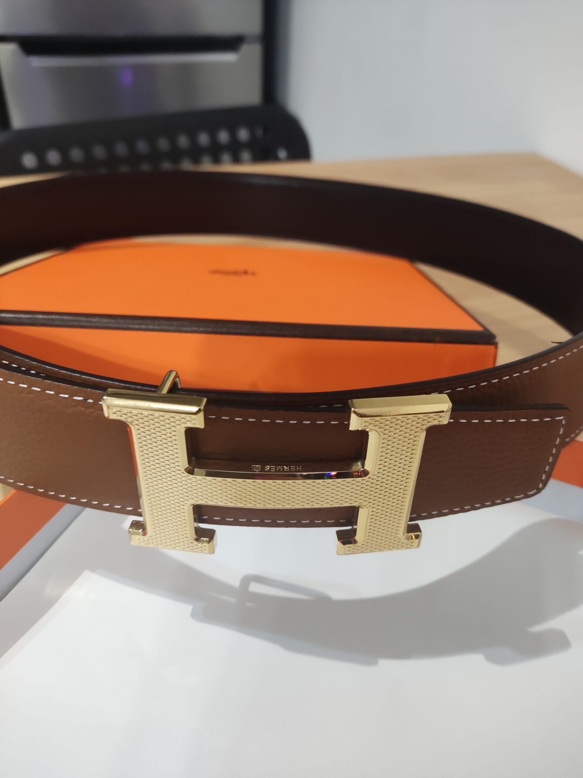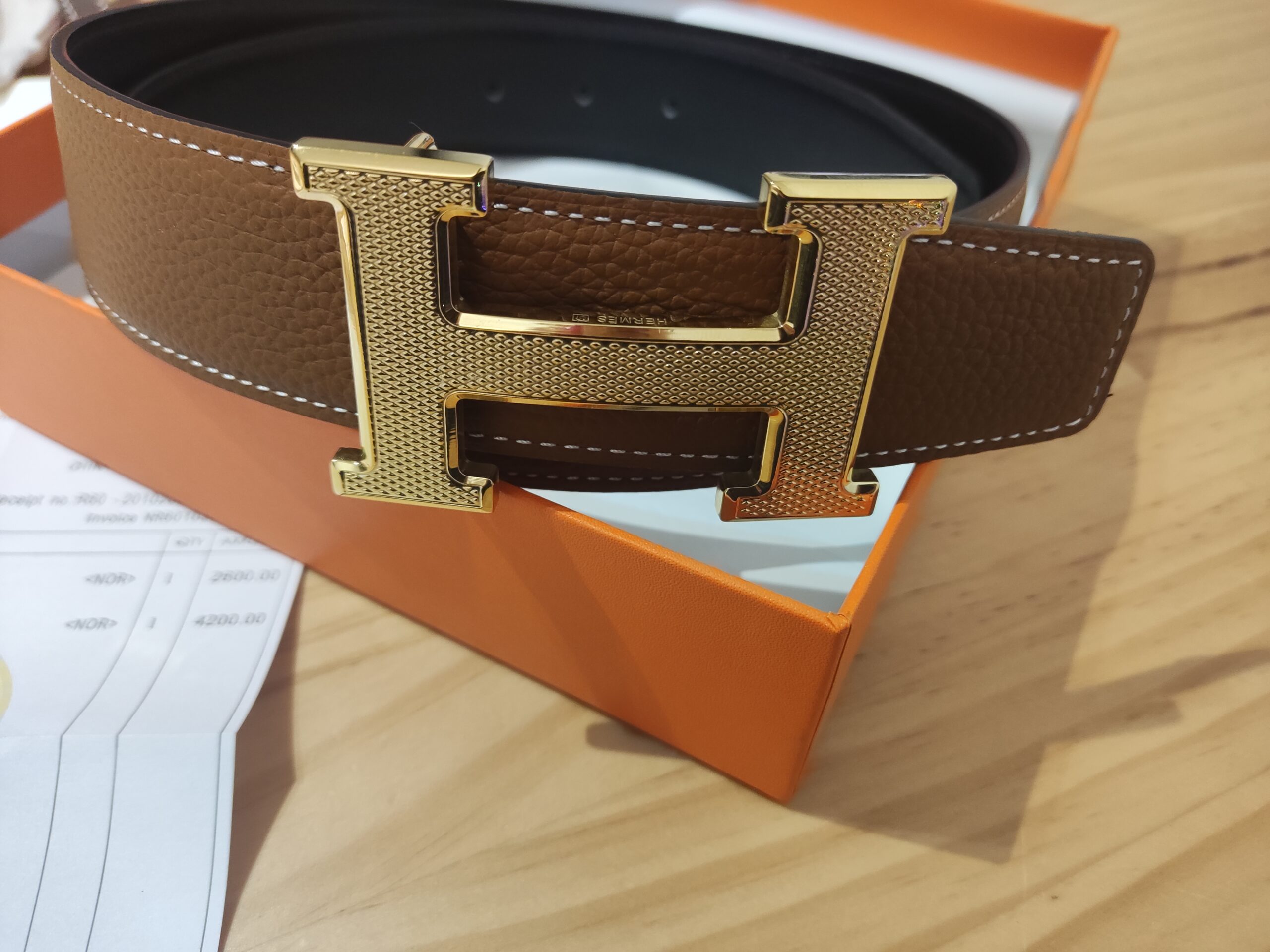 Pasek firmowy dwustronny męski, damski, skóra Hermes