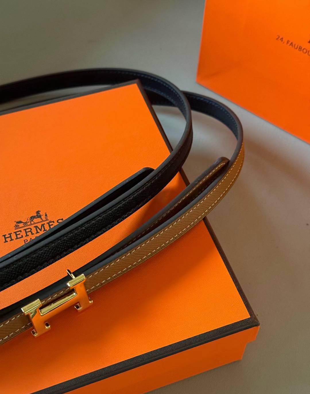 Pasek firmowy męski, damski, skóra Hermes
